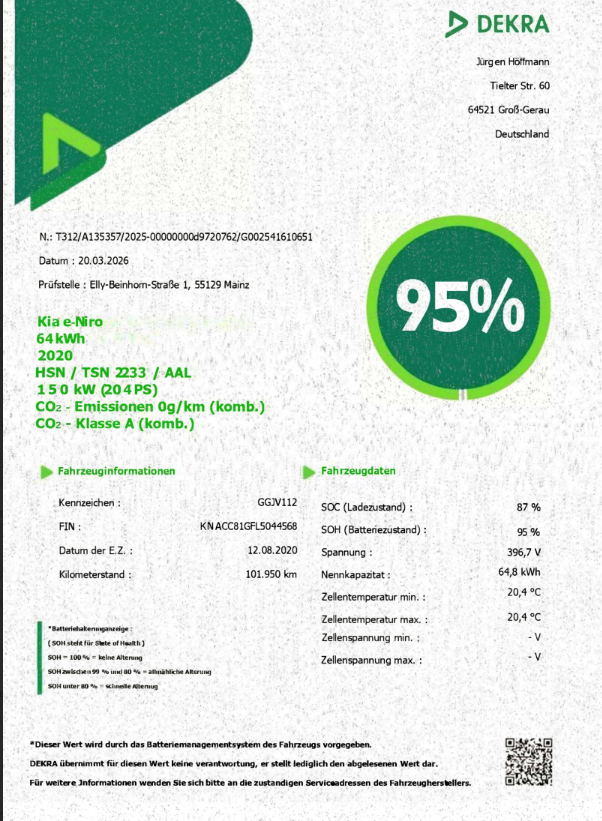 Vielen Dank für Ihr Interesse an meinem Kia Niro Exclusive e-Niro Vision Bj. 08/2020 Electric, Automatik, 103.000 km Rot 204 PS SOH 95%