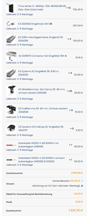 • Erweiterung 14x Trina Vertex S+ NEG9R.28, 450Wp, Glas-Glas zu je 52 Euro ~ 750 Euro
