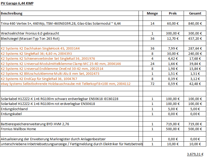 • Erweiterung 2x BYD HVM 2,76 KwP des bestehenden BYD ~ 1400 Euro für beide