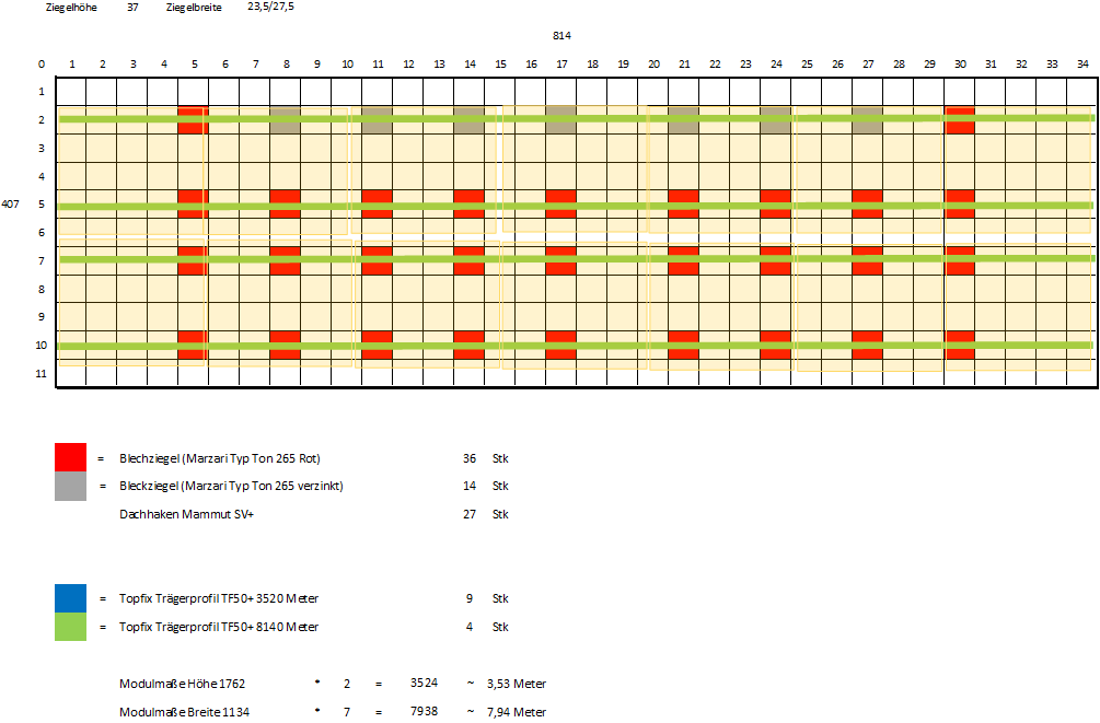 • Aufbau Gestell für PV Module auf Garagendach mit 2×7 Modulen